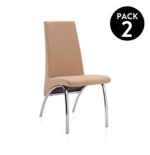 Pack 2 sillas tapizadas en Piel sintética Color Latte, Patas Metal, Medidas:...